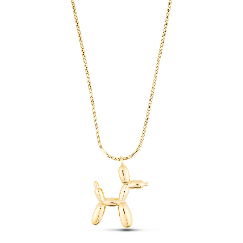 Detta långa halsband med hänge i form av en hund är ett elegant och lekfullt smycke som ger din outfit en unik touch. Tillverkat av rostfritt stål och belagt med Gold PVD, vilket gör halsbandet hållbart och glänsande. Halsbandets totala längd inklusive hänge är 42 cm, vilket gör det bekvämt att bära och perfekt som present till hundälskare eller för dagligt bruk.