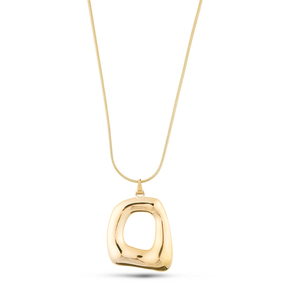 Luxe Square Pendant är ett elegant halsband med en öppen fyrkantig hänge, vilket ger en modern och sofistikerad look. Tillverkad av rostfritt stål och belagd med Gold PVD, vilket gör halsbandet hållbart och glänsande. Halsbandet har en längd på 31 cm inklusive hänge och passar perfekt för en lyxig, modern look. Perfekt för dagligt bruk eller som present.