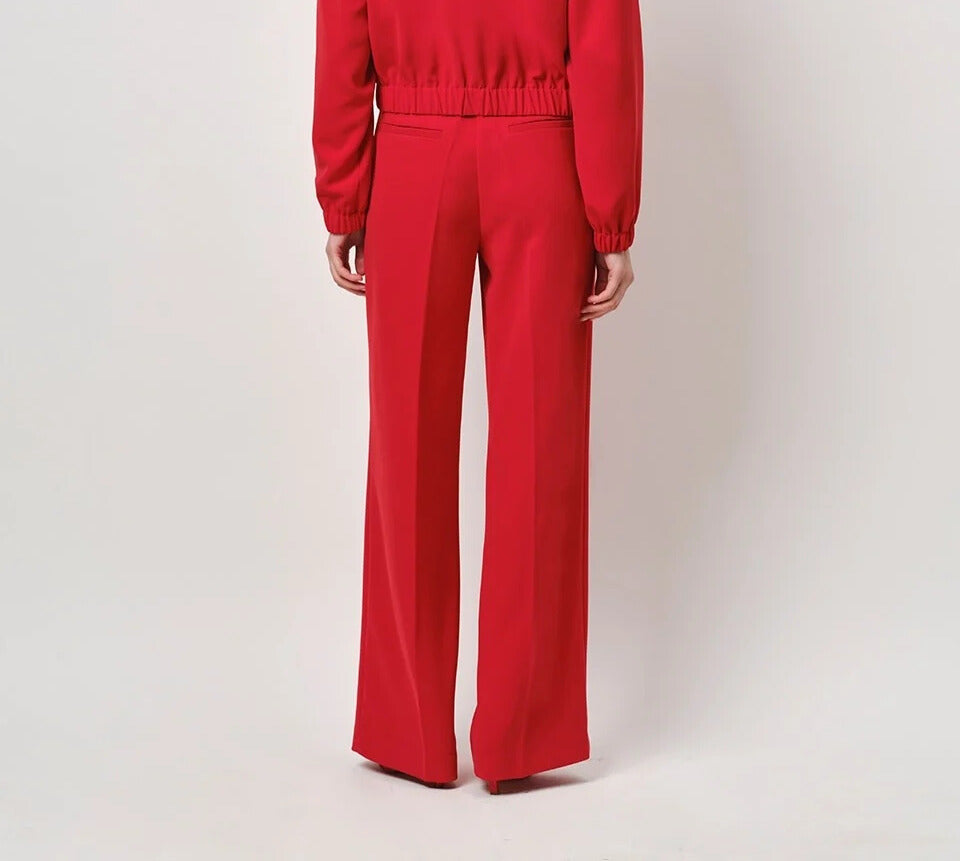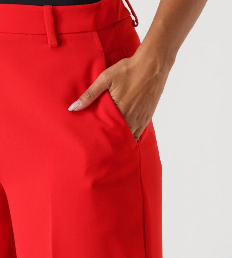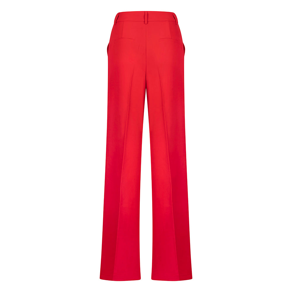 Deze rode broek is een must-have voor elke garderobe. De soepelvallende stof zorgt voor een comfortabele pasvorm, terwijl de rechte pijpen een elegante en tijdloze uitstraling geven.